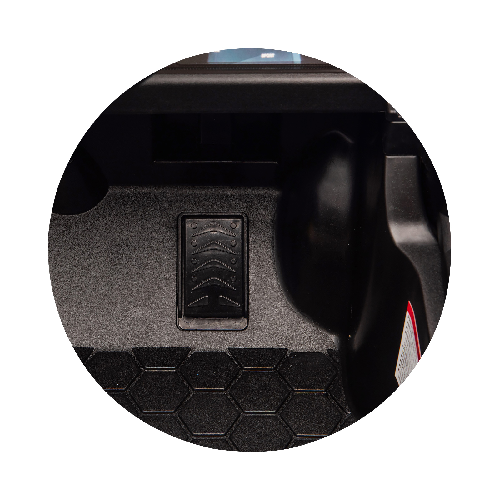 Включва предпазител 10A, двуточков предпазен колан и стабилна конструкция.