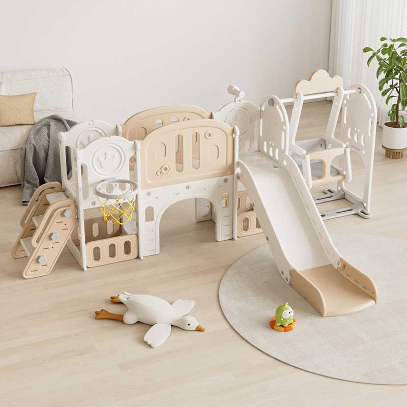 Детски игрален център с пързалка в кафяв цвят: безопасна и активна игра