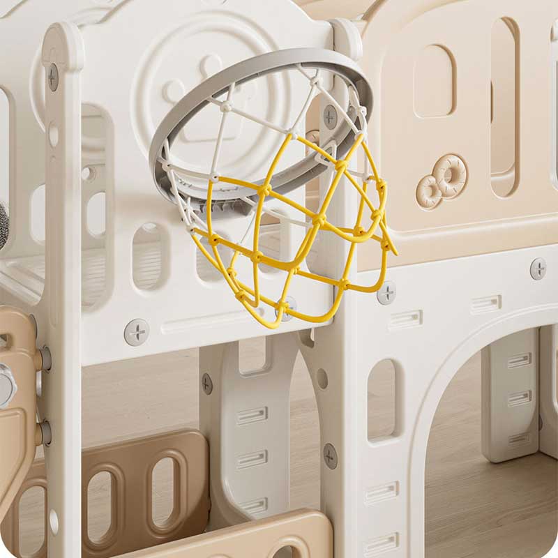 Детският игрален център в кафяво-бежова гама на марката Feelkids е създаден за активна игра в спокойна и безопасна среда. Комбинира движение, баланс и първи спортни активности в компактна конструкция, подходяща за дома или защитени външни пространства.