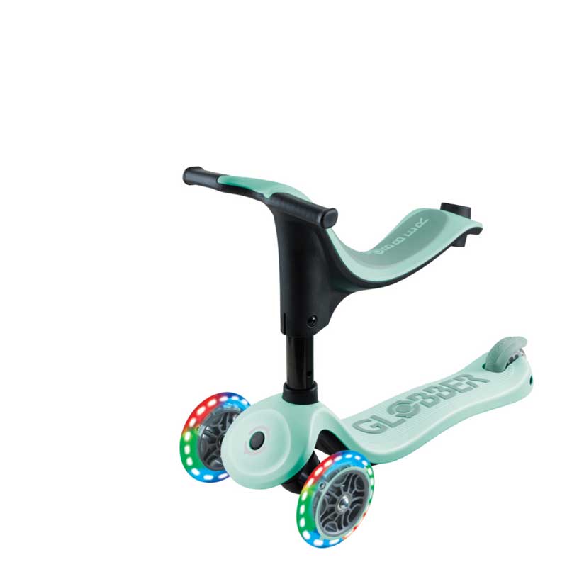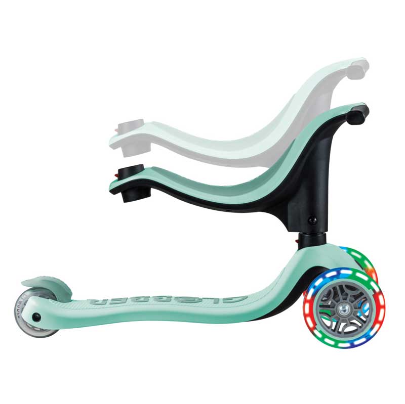 Изберете Тротинетка със седалка 4 в 1 GLOBBER GO UP SPORTY LIGHT - ментово зелена, като се доверите на сигурността и комфорта по време на всички разходки с вашето дете, и се забавлявате докато откривате безброй приключения заедно.